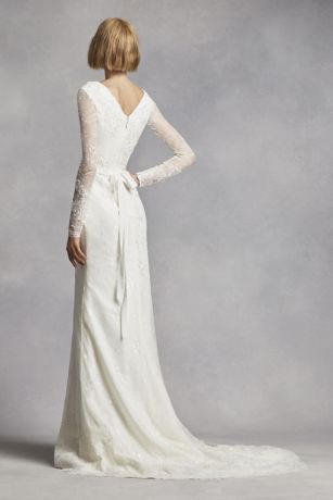 New White By Vera Wang Long Sleeve Lace Wedding Dress - This long sleeve White by Vera Wang sheath with a sheer ... / It is conservative but stylish.